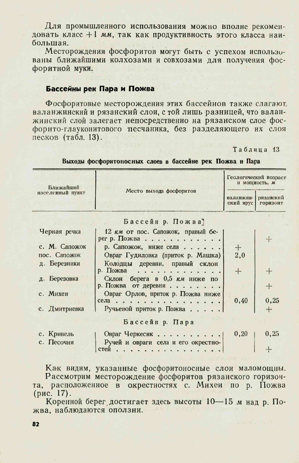 песков (табл. 13).