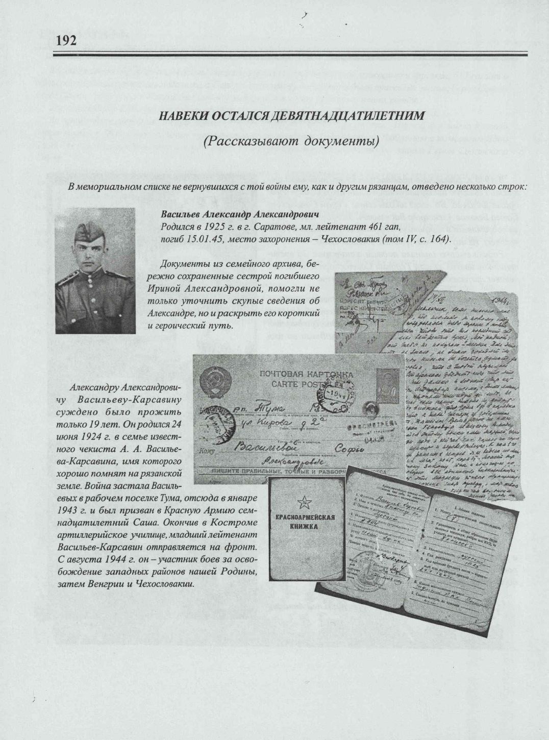 В мемориальном списке не вернувшихся с той войны ему, как и другимрязанцам, отведено несколько строк: