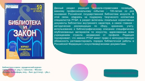 Либерея-Бибинформ, 2025. – Вып. 59 (2'2025). – 384 с. Посмотреть содержание