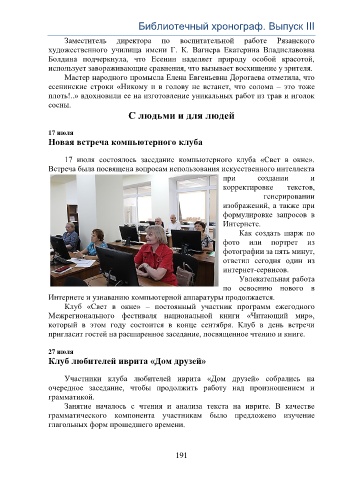 17 июля состоялось заседание компьютерного клуба «Свет в окне».