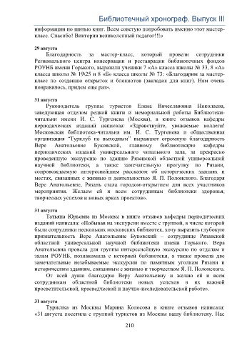 «31 августа посетила с группой туристов из Москвы вашу библиотеку. Нас