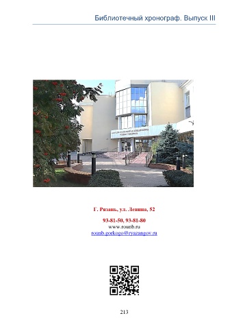 Библиотечный хронограф. Выпуск III Г. Рязань, ул. Ленина, 52 93-81-50, 93-81-80 www.rounb.ru rounb.gorkogo@ryazangov.ru 213