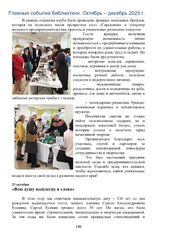 Главные события библиотеки. Октябрь – декабрь 2025 г.