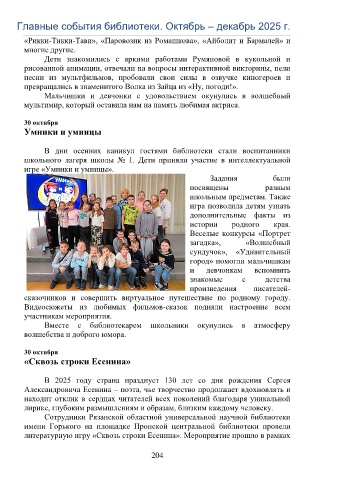 Главные события библиотеки. Октябрь – декабрь 2025 г.