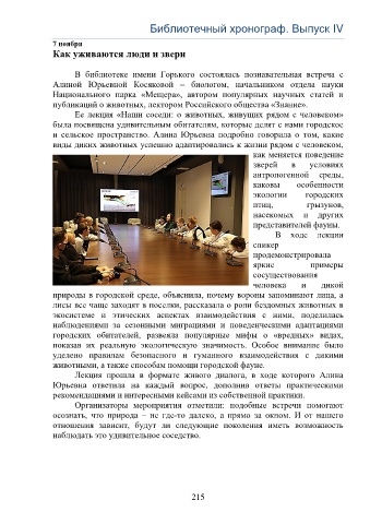 Ее лекция «Наши соседи: о животных, живущих рядом с человеком»
