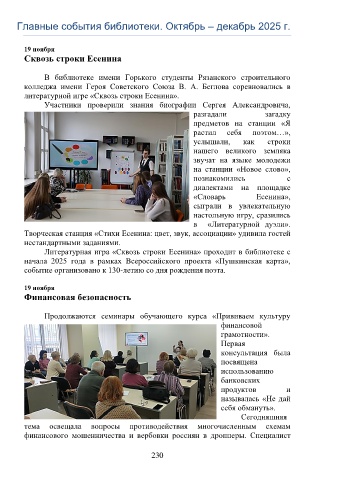 Главные события библиотеки. Октябрь – декабрь 2025 г.