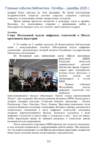 Главные события библиотеки. Октябрь – декабрь 2025 г.
