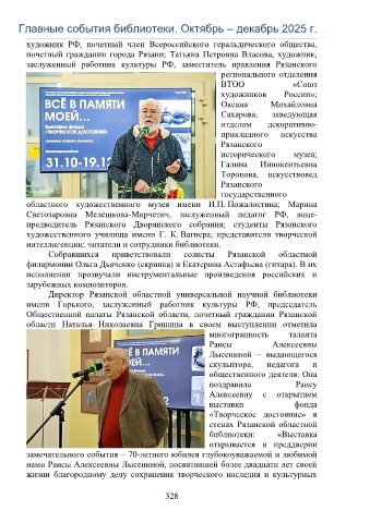 заслуженный работник культуры РФ, заместитель правления Рязанского
