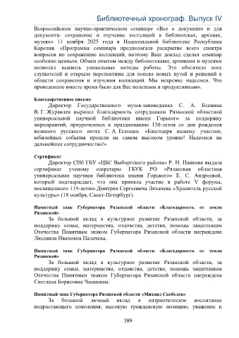 сертификат ученому секретарю ГБУК РО «Рязанская областная