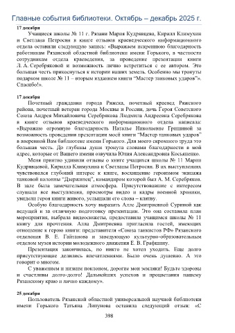 подарком школе № 11 – вторым изданием книги “Мастер танковых ударов”».