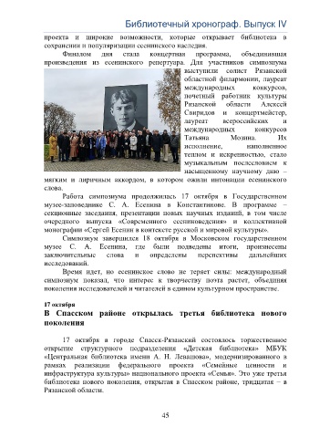 музее-заповеднике С. А. Есенина в Константинове. В программе –