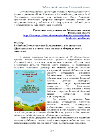 Page 168 - Специальный выпуск информационного сборника "Библиотечный хронограф"